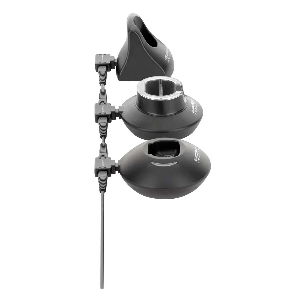 El cargador triple de Gamma+ permite cargar simultáneamente hasta 3 dispositivos desde una sola fuente de alimentación, optimizando el espacio y eliminando el desorden de cables.