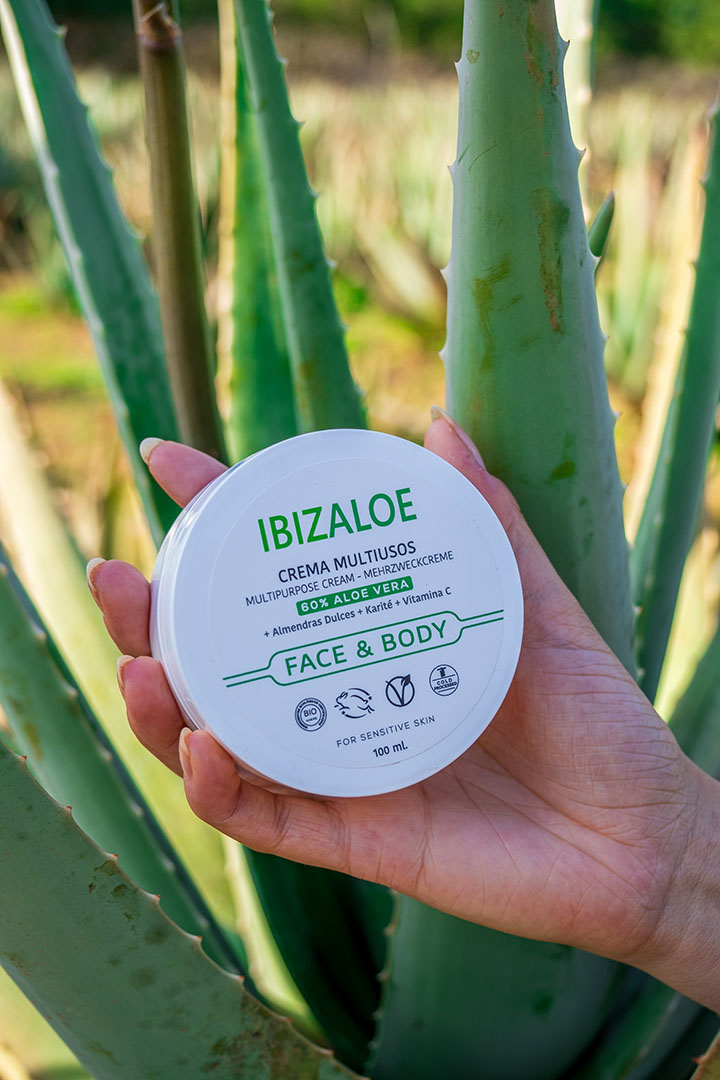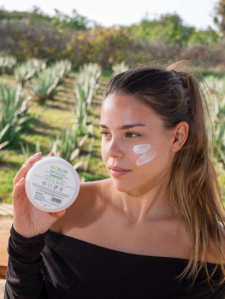 Si estás en busca de una solución versátil para el cuidado de tu piel, la Crema Multiusos Aloe Vera 100ml de Ibizaloe es tu mejor opción. Esta crema, formulada con aloe vera orgánico de Ibiza, es ideal para todo tipo de piel y para múltiples usos, desde la hidratación diaria hasta el alivio de irritaciones o quemaduras solares.