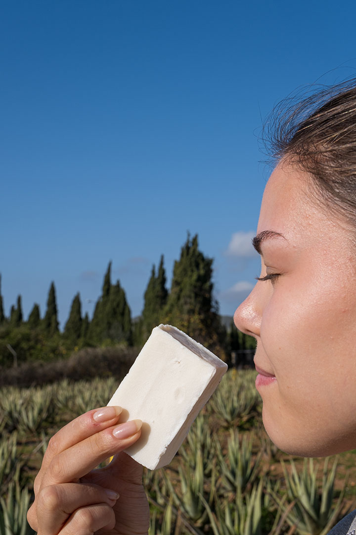 Jabón de higiene diaria formulado artesanalmente con Aloe Vera y Aceite de Oliva, para el cuidado de las pieles más exigentes. Recomendada para pieles sensibles.