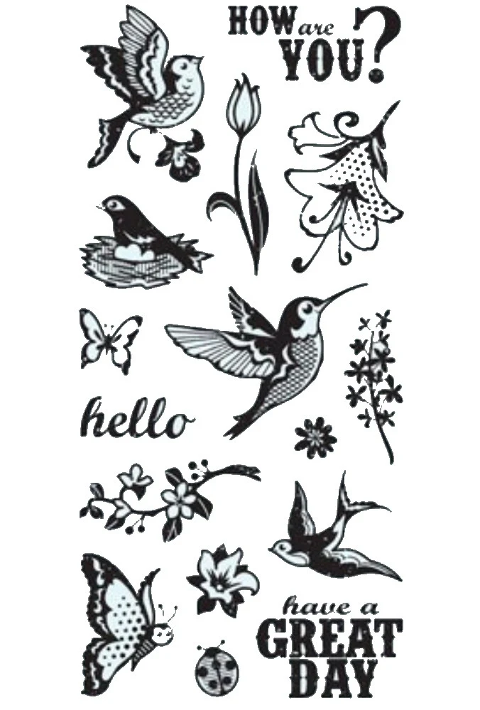 Planilla de Sellos Importados hechos de polímero transparente autoadheribles que se utilizan con la ayuda de un bloque de acrílico (**se vende por separado).