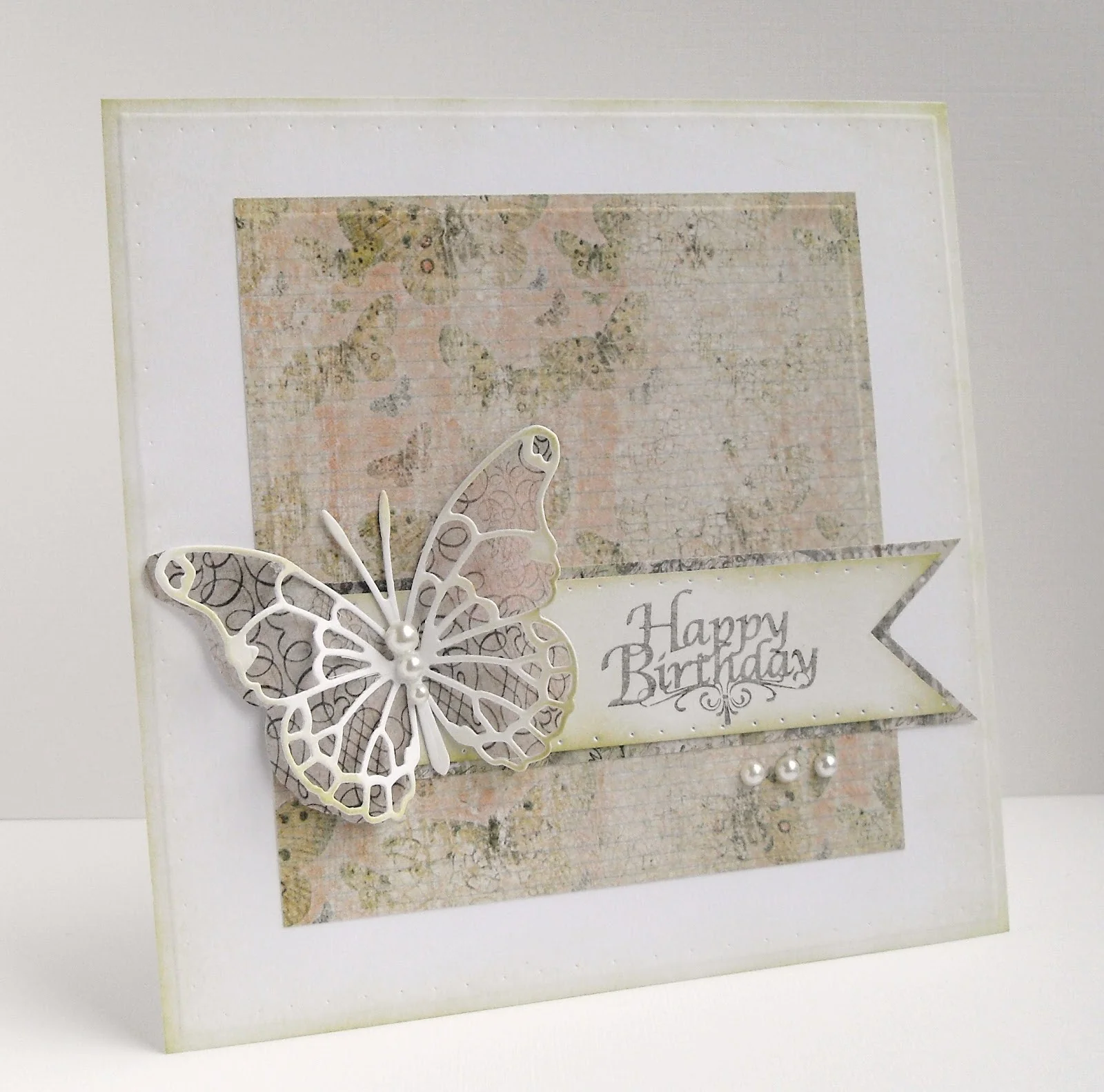 Un suaje de mariposa que mide 4.6 x 6.4 y 1 x 4.3 cm. (cuerpo y alas)